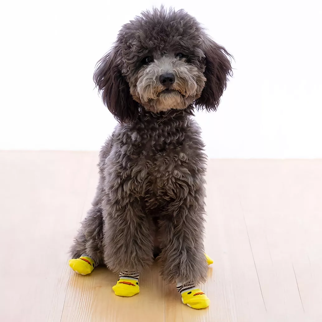 Oh man, I've gotta tell you about these socks for my little fur baby! They're seriously the bee's knees. You know when you find something and it's just? That's how I feel about these pup socks. First off, let me rave about the cartoon design. It is adorably cute, like so stinkin' precious that it makes your heart do a little jig every time you see them. My dog strutting around in them? Pure gold! The fun and vibe they give off will have you grinning from ear to ear without even realizing it. And don't get me started on how much my poo loves them too. From the moment I slipped those bad boys onto their paws, it was game over - total love at first wear. These aren’t just any ordinary doggy socks; they’re a level up with their unique charm that’s hard to resist! The quality of these socks is also worth mentioning because let’s face it – dogs can be rough on stuff sometimes! But no worries here, because these hold up well against all kinds of canine antics and adventures. So if you're looking for some adorable sock action for your furry friend that adds a dash of whimsy to their wardrobe while keeping those paws protected then look no further than this gem right here! I mean seriously folks: what’s not to love? Cute design, check; happy doggo wearing 'em, double-check; durability under pressure (or should we say paw-ssure?), triple check! All in all, there are zero regrets with this purchase – absolutely loving every bit of our experience with these delightful pup socks.