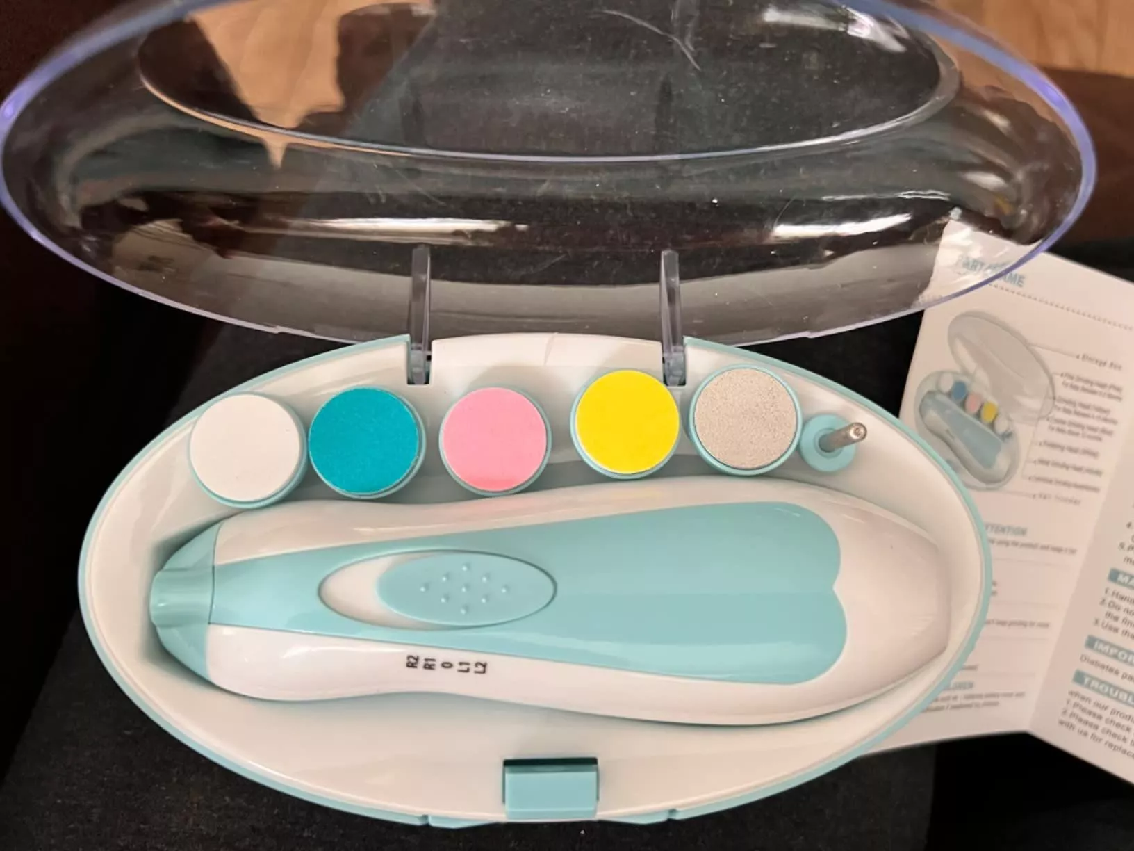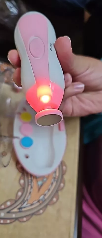This nail trimmer is so easy to use, and it's safe for my little one. It has a light that helps me see better, plus six different attachments. A great buy!