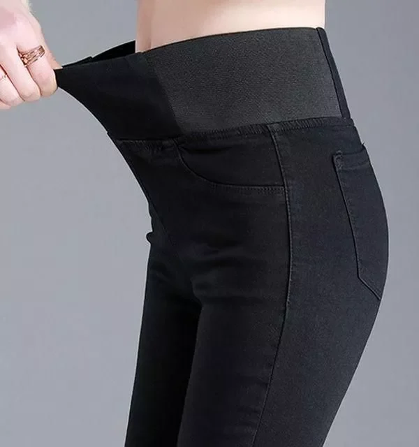 High Stretch Skinny Mom Jeans – Women’s Denim Pencil Pants in Blue, Gray, and Black