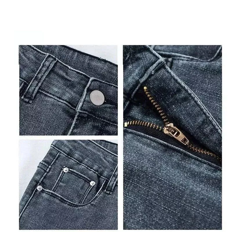 Our jeans are tailored to accentuate your shape with a high-waisted design and a skinny silhouette that hugs your curves in all the right places. The cotton elastic denim fabric provides just the right amount of stretch, ensuring you can move freely without sacrificing style. With a classic zipper fly closure, these pencil pants offer a seamless look that transitions effortlessly from day to night.