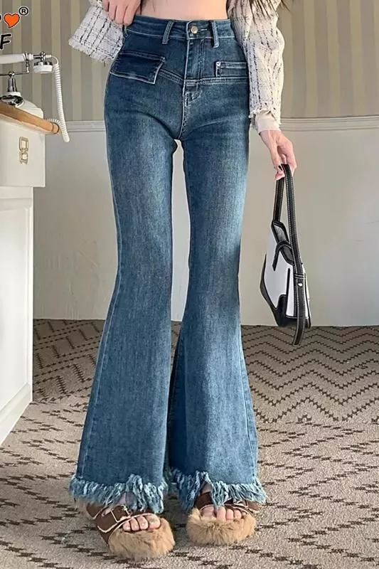 It’s all in the details. The high waist cut and straight leg design echo the beloved vintage aesthetic, while the stretch fabric provides modern comfort and mobility. This blend of old and new, classic and current, makes our jeans a unique and essential piece in your collection. The Korean fashion inspiration behind these pants ensures they’re at the forefront of denim trends, setting you apart from the crowd.
