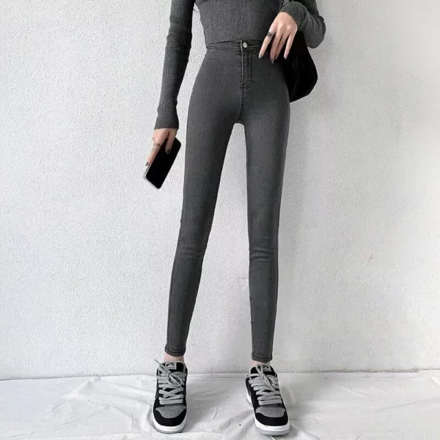 Step into a blend of retro chic and modern style with our High-Waist Stretch Skinny Jeans. Designed for the woman who appreciates both fashion and comfort, these jeans are the perfect addition to your all-season wardrobe. With a nod to the iconic 90s era and an eye on current trends, these super stretch gray denim jeans are your new go-to for a sexy, high-waisted silhouette that flatters and flaunts in all the right places.