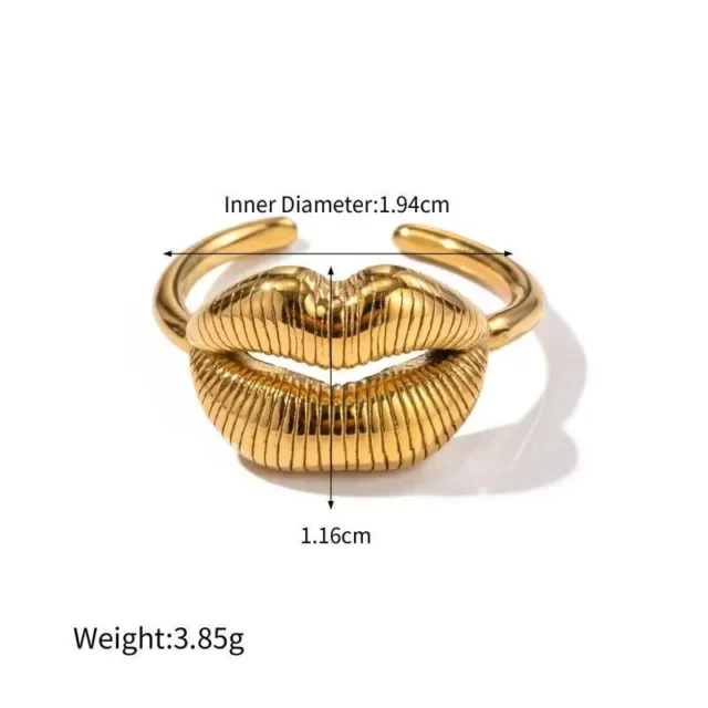 Introducing our latest fashion statement – a Luxurious 18K Gold Plated Stainless Steel Lip Ring, meticulously crafted for the modern woman. With its distinctive lip design, this ring is more than just a piece of jewelry; it’s a symbol of trendy sophistication and style. Designed to captivate and charm, this ring is the perfect gift for yourself or a loved one, ensuring you stand out at any occasion.