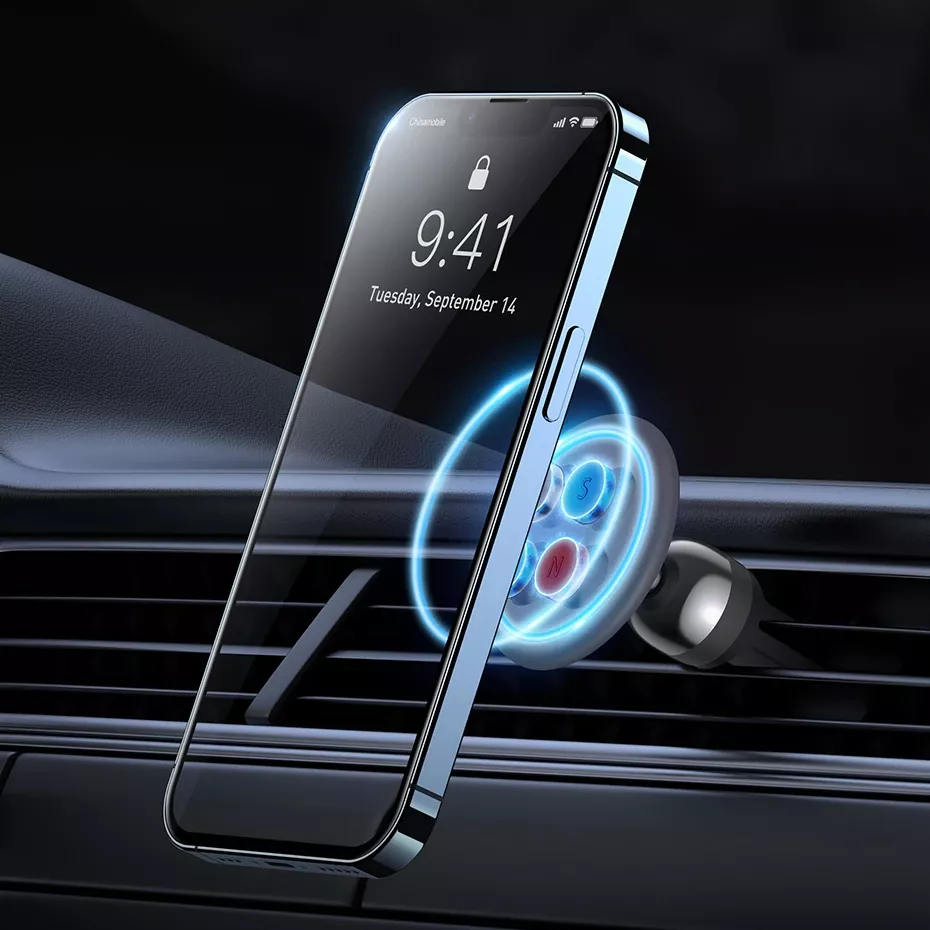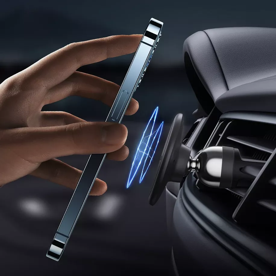 this phone holder works perfectly in my car. the magnetic grip is strong and keeps my phone in place no matter how bumpy the ride. the 360-degree rotation feature is great for adjusting the viewing angle. installation was simple and it fits both the air vent and dashboard well. it’s compact and doesn’t get in the way. this holder makes it so much easier to use my phone for navigation and calls while driving. highly recommend it.