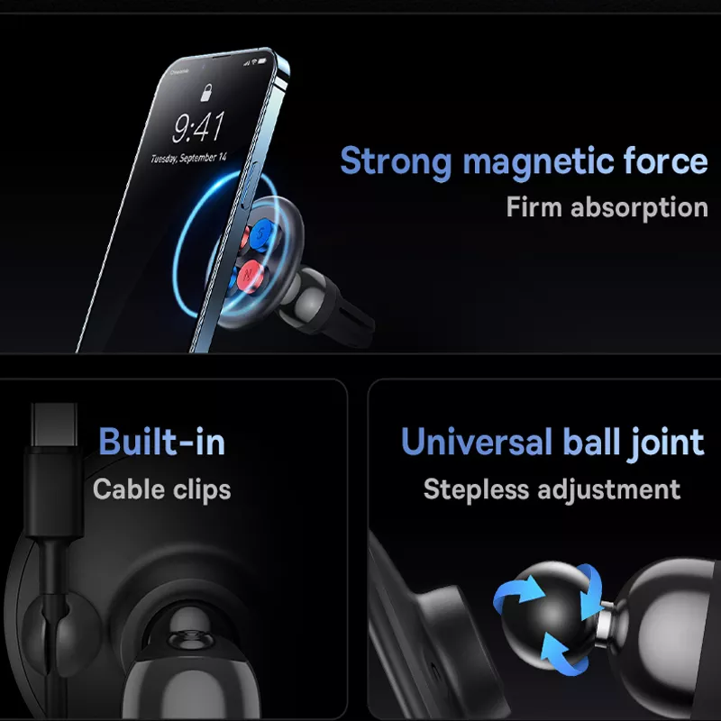 this car phone holder is excellent. the magnetic hold is very strong, ensuring that my phone stays securely in place even on rough roads. the 360-degree rotation feature is incredibly useful, allowing me to easily adjust my phone to the perfect viewing angle. installation was quick and straightforward, and it fits well in both the air vent and on the dashboard. the design is sleek and doesn’t take up much space, which i appreciate. it’s made using my phone for navigation and hands-free calls much safer and more convenient. overall, i’m very happy with this purchase and would highly recommend it to others.