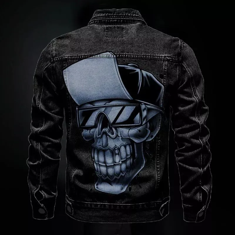Unleash Your Retro Edge with the Men’s Vintage Skull Print Denim Jacket