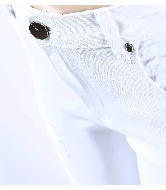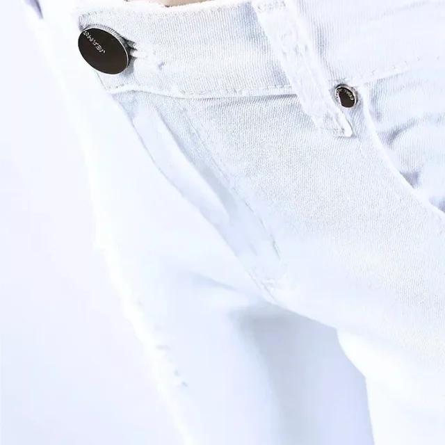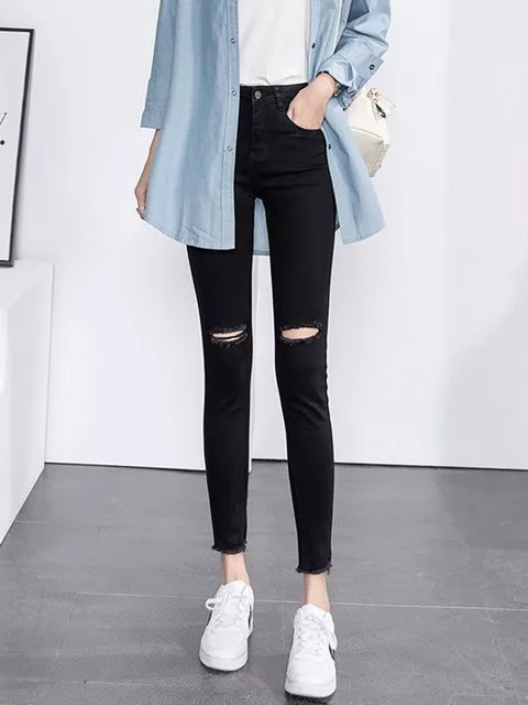 Our jeans celebrate the essence of individuality with a high street style that speaks volumes. The pencil pants silhouette sculpts and contours, while the softener fabric ensures every movement is a breeze. The unique distressed detailing, complete with rips, holes, and hollow-outs, is an expression of character and raw elegance. Practicality comes in the form of functional pockets and a secure zipper fly closure, making these jeans as sensible as they are stylish.