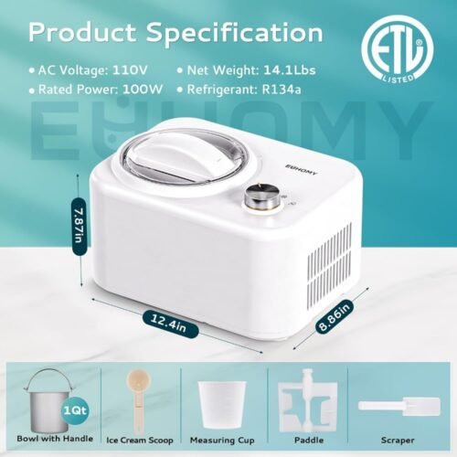 This compact yet powerful ice cream maker is designed to fit any countertop, thanks to its sleek build (12.4″L x 8.86″W x 7.87″H). The 1-quart capacity is ideal for single servings or small gatherings, offering just the right amount without waste. With 3 preset modes—mixing, cooling, and full ice cream making—you can customize your treat to match your cravings, from light and fruity to rich and decadent.