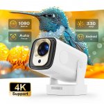 At just 1.34 lbs and a compact size of 7.7 x 4 x 3.6 inches, this projector is lightweight and easy to carry wherever you go. It features a 180° flexible rotating stand for effortless setup and screen adjustment, and with its 6-axis gyro sensor air mouse, you can control your projector with a simple gesture. Perfect for both indoor and outdoor use, it’s the ideal solution for anyone looking to enjoy big-screen entertainment anywhere, anytime.