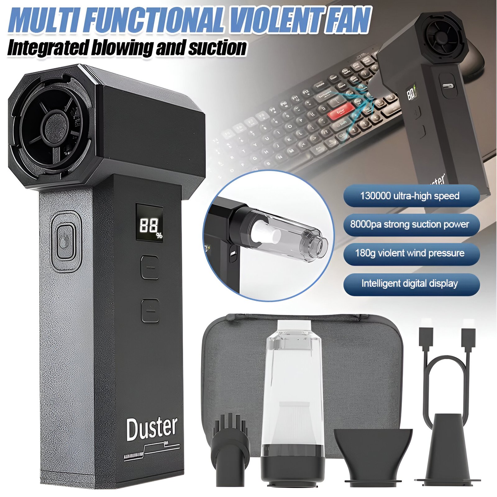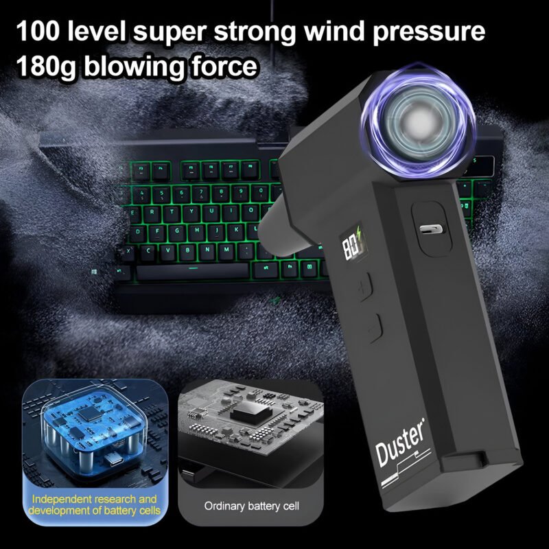 The 130000RPM High-Speed Air Blower is in a class of its own. Unlike traditional air dusters, this tool is completely cordless, rechargeable, and insanely powerful. With a sleek black design and real-time LED display, it’s as stylish as it is functional. Its intelligent control system lets you fine-tune the air power to match your task, and storm mode gives you instant access to maximum speed with a long press. It’s not just a cleaning tool — it’s a cleaning revolution.