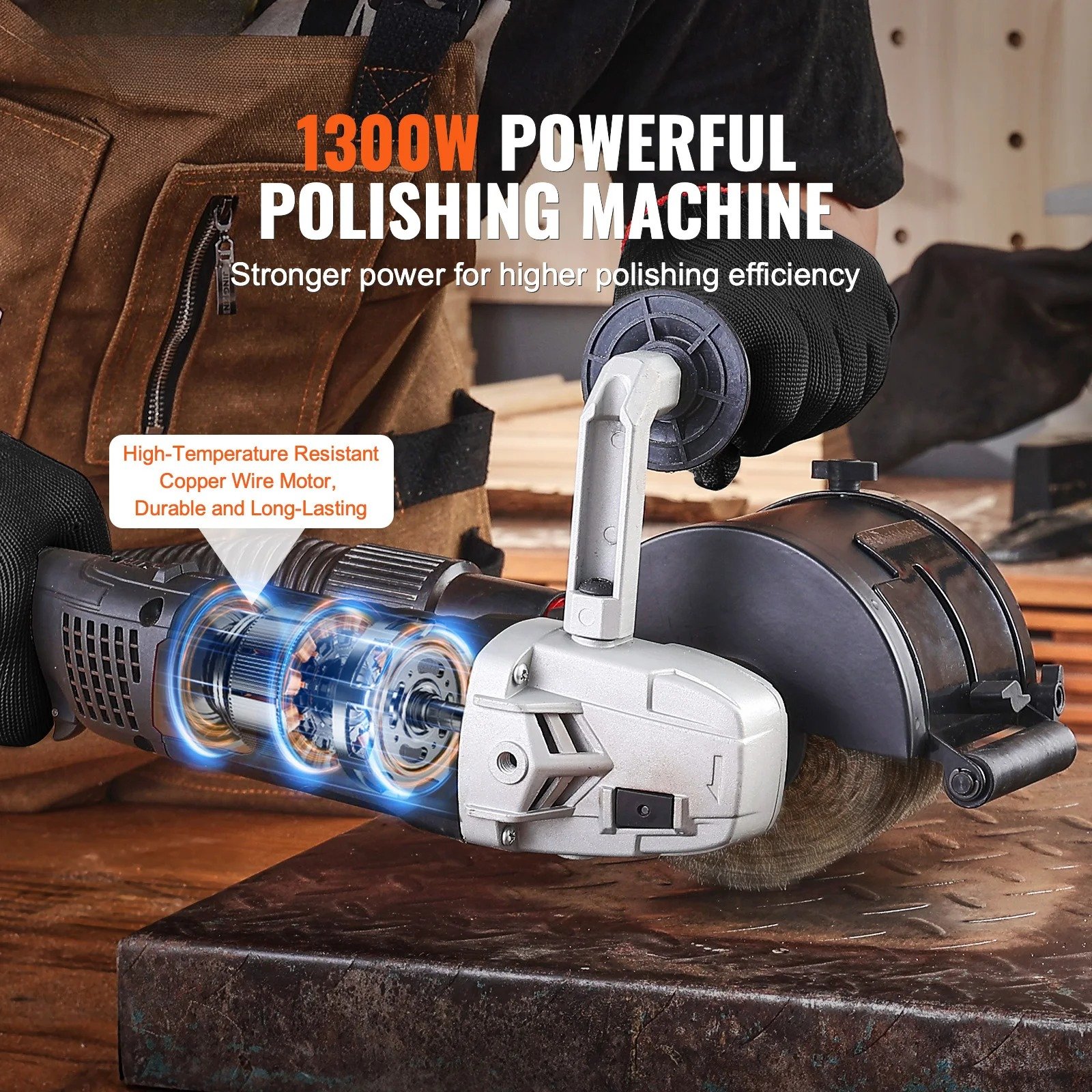 - 1300W High-Performance Motor – Delivers robust power for heavy-duty polishing and grinding.