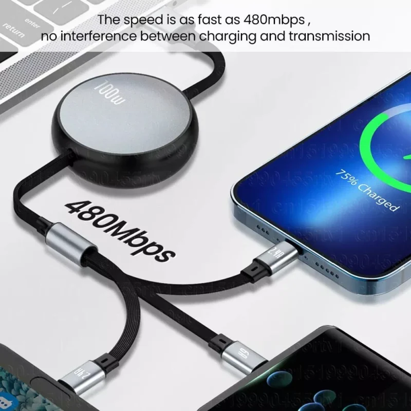 3-in-1 Retractable Fast Charger – USB C Cable with Multi Connectors for iPhone, Samsung & Huawei