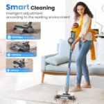 One of the standout features of this vacuum is its smart adjustment system, which automatically detects the type of surface you’re cleaning and optimizes the suction strength. This feature ensures a thorough clean without any guesswork, whether you’re on hardwood, tile, or carpet. The anti-entangled design prevents hair and debris from wrapping around the roller, making maintenance a breeze.
