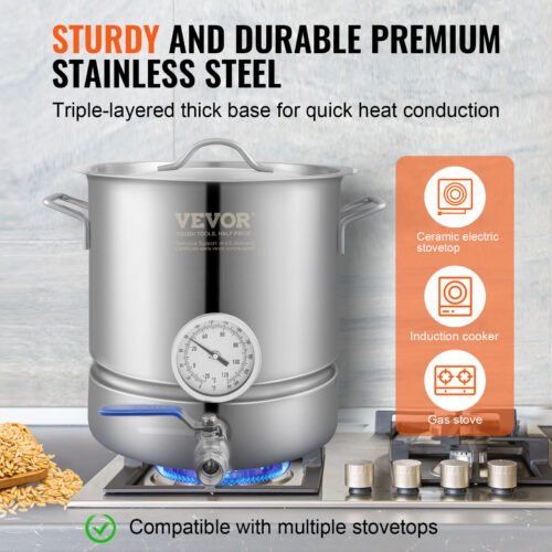 Don’t settle for average. Upgrade your home brewing setup with this stainless steel brew kettle and start creating your own flavorful masterpieces today. Whether you’re brewing for fun, for friends, or for the thrill of it, this kettle has everything you need to take your creations to the next level.