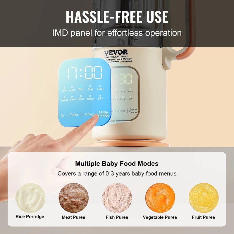 - Easy-to-Use Control Panel: The intuitive touch-start IMD panel lets you easily adjust settings for various types of food. Whether you need a fine puree or a chunkier texture, this baby food maker offers simple control for perfect results every time.