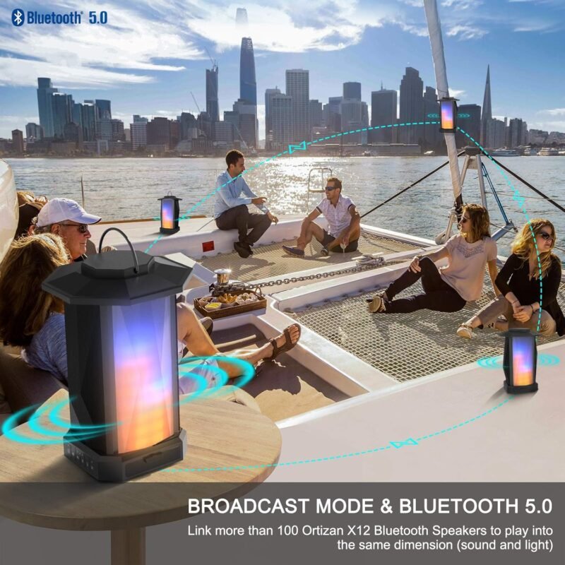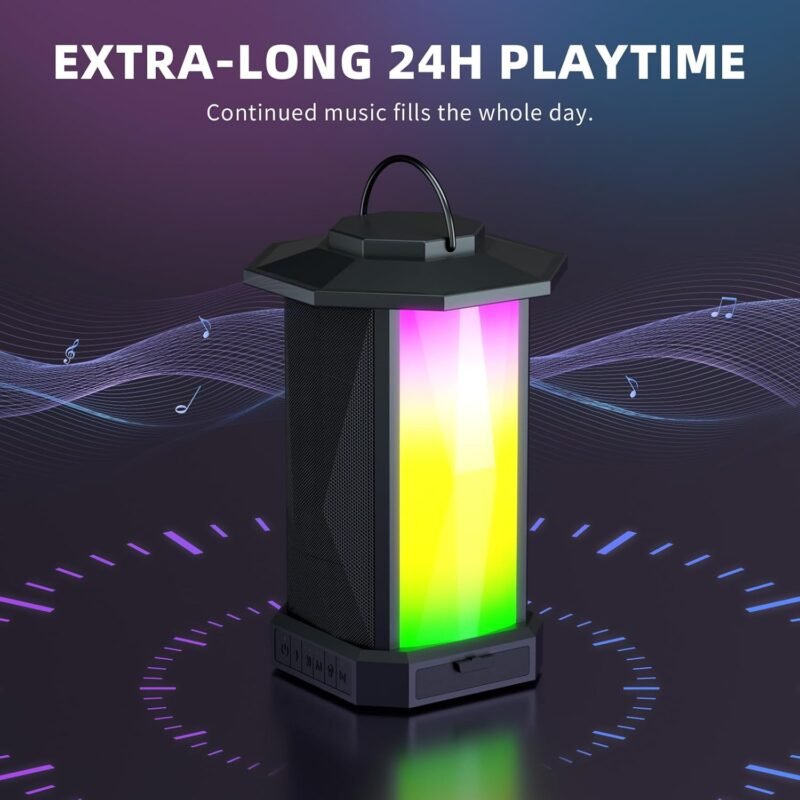 What makes this speaker stand out is its interactive LED Colorful Rhythm Light. With 4 customizable light modes – rainbow light show, pulsating light, phase light, and white light – the speaker doubles as a decorative lantern that adds a stunning visual effect to any setting. These lights sync with your music to create an immersive atmosphere that elevates your event. Plus, with IPX5 waterproof protection, it’s ready to withstand outdoor elements like rain and spills, making it ideal for any adventure.