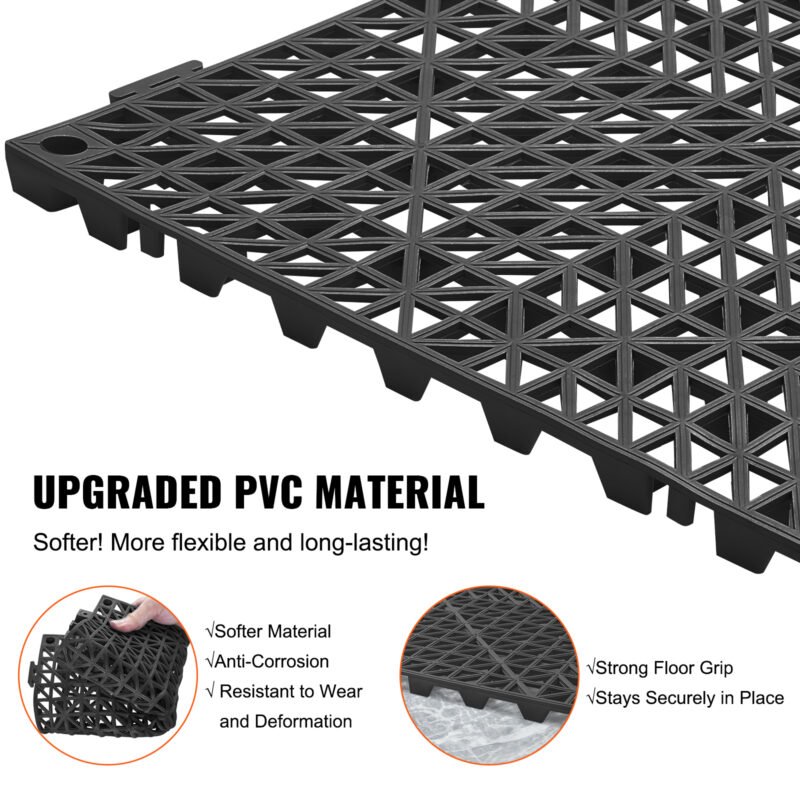 Made from flexible yet sturdy PVC, each tile features upgraded 0.6-inch thick drainage pins that allow for quick water flow, ensuring no standing water remains. This not only keeps your floors dry but also helps reduce odors in damp areas. The smart interlocking design makes installation a breeze, while the sleek black color blends seamlessly with any environment.