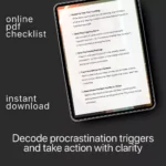 Procrastination isn’t laziness. It’s information. A Checklist to Decode Your Procrastination is a practical, self-guided digital resource designed to help you understand what’s really happening when you keep putting things off — and what to do about it. Instead of forcing you into rigid productivity systems, this checklist walks you through your own thoughts, emotions, and habits with simple, honest prompts. It turns vague guilt into clear insight and small, doable action. Whether you’re stuck on work tasks, personal goals, or everyday responsibilities, this guide helps you uncover the hidden reasons behind your delays and finally move forward.