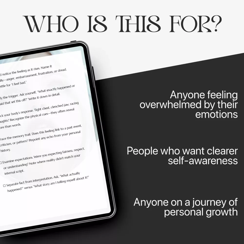 - Clear, step-by-step prompts to help you identify and understand emotional triggers
