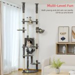 This adjustable floor-to-ceiling cat tower is more than just a plaything. It is a versatile, sturdy structure that supports your cat’s natural instincts to scratch, climb, and rest. The variety of platforms, perches, and cozy spots will ensure that each of your furry companions can find their own space to relax or play. Whether it’s a spot to lounge in the plush hammock, scratch the posts to their heart’s content, or hide away in the cozy condo, your cats will feel right at home.