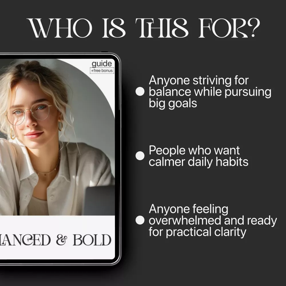 Take the first step toward a more grounded, spacious, and purpose-driven life. Download Balanced & Bold today and start creating the balance you’ve been craving.