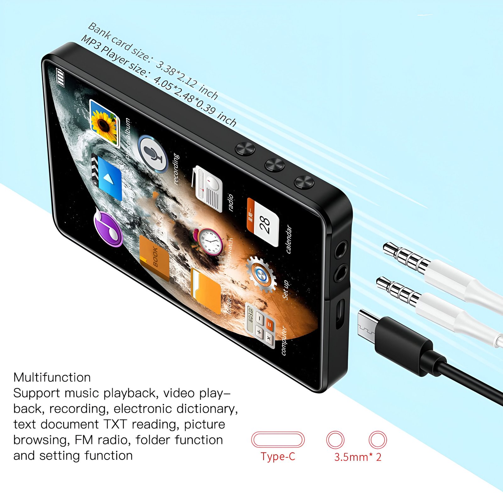 - Multifunctional Use – Supports music, video, voice recording, FM radio, eBooks, photo browsing, and more