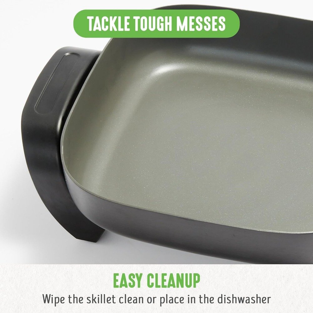 - Dishwasher Safe: The entire skillet, excluding the temperature control, is dishwasher safe, making cleanup quick and easy after cooking. Spend less time cleaning and more time enjoying your meal.