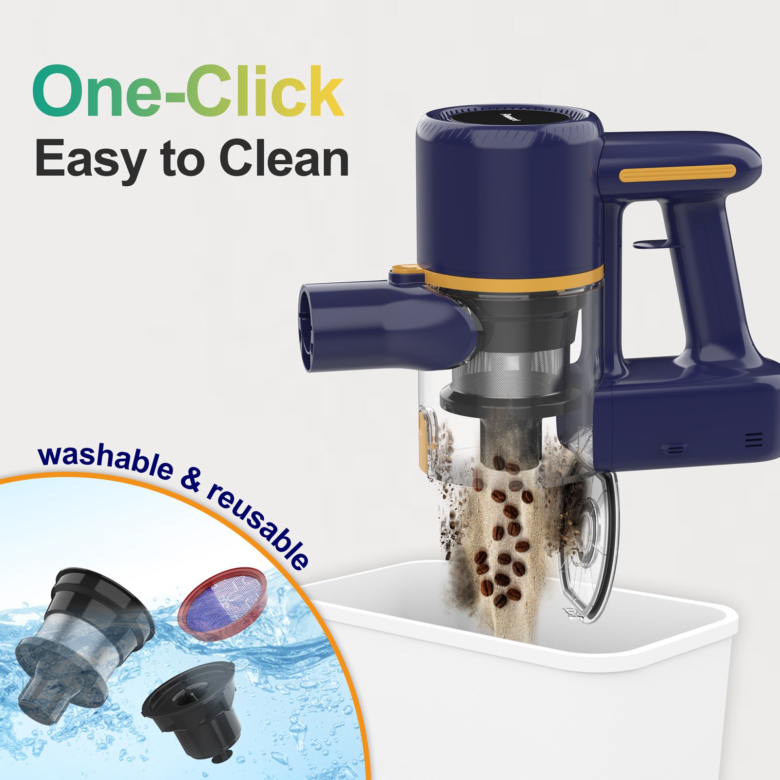 - Bagless Design: No need to worry about messy bags. The easy-to-empty dust cup makes disposal simple and convenient.