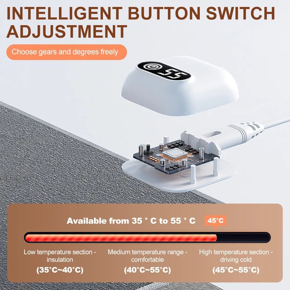 - Splash-Proof and Safe: The smart switch design ensures no electric shock even if the mat gets in contact with water.