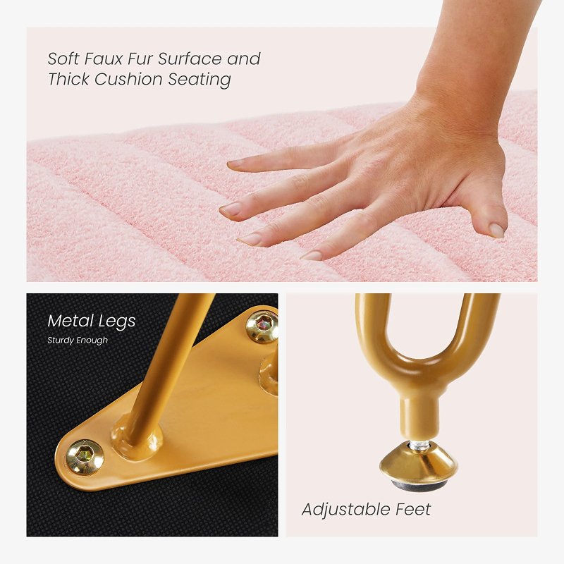 - Luxurious Faux Fur Upholstery: Made from soft, comfortable faux fur fabric, this stool is designed for exceptional comfort. The thick padded cushion ensures a cozy seating experience while adding a fashionable touch to your room.