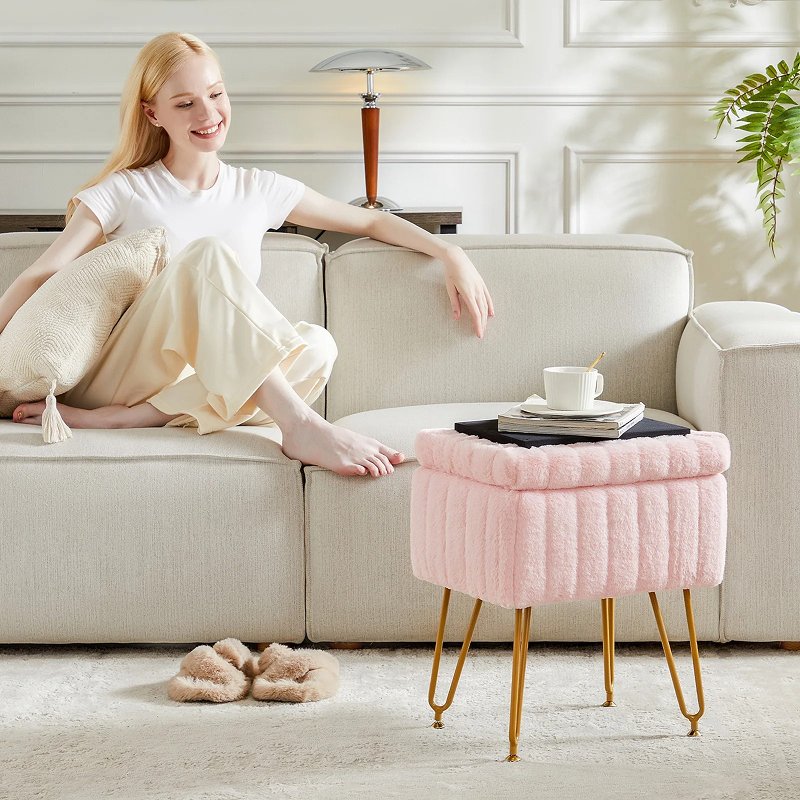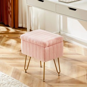- Hidden Storage Space: Beneath the plush faux fur surface, this stool offers a hidden compartment with approximately 10L of capacity. It’s perfect for storing makeup, cosmetics, magazines, or other small items, helping you keep your space organized and clutter-free.
