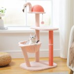 Inspired by the graceful stance of a flamingo, this multi-level cat tree is more than just a piece of pet furniture – it’s a playground, a scratching haven, and a cozy resting spot all in one. The durable sisal-covered scratching posts satisfy your cat’s natural scratching instincts, while the spacious platform and plush hammock provide a comfy place to rest and observe their surroundings. The flamingo-shaped plush toy adds a playful touch, making it an exciting adventure every day.
