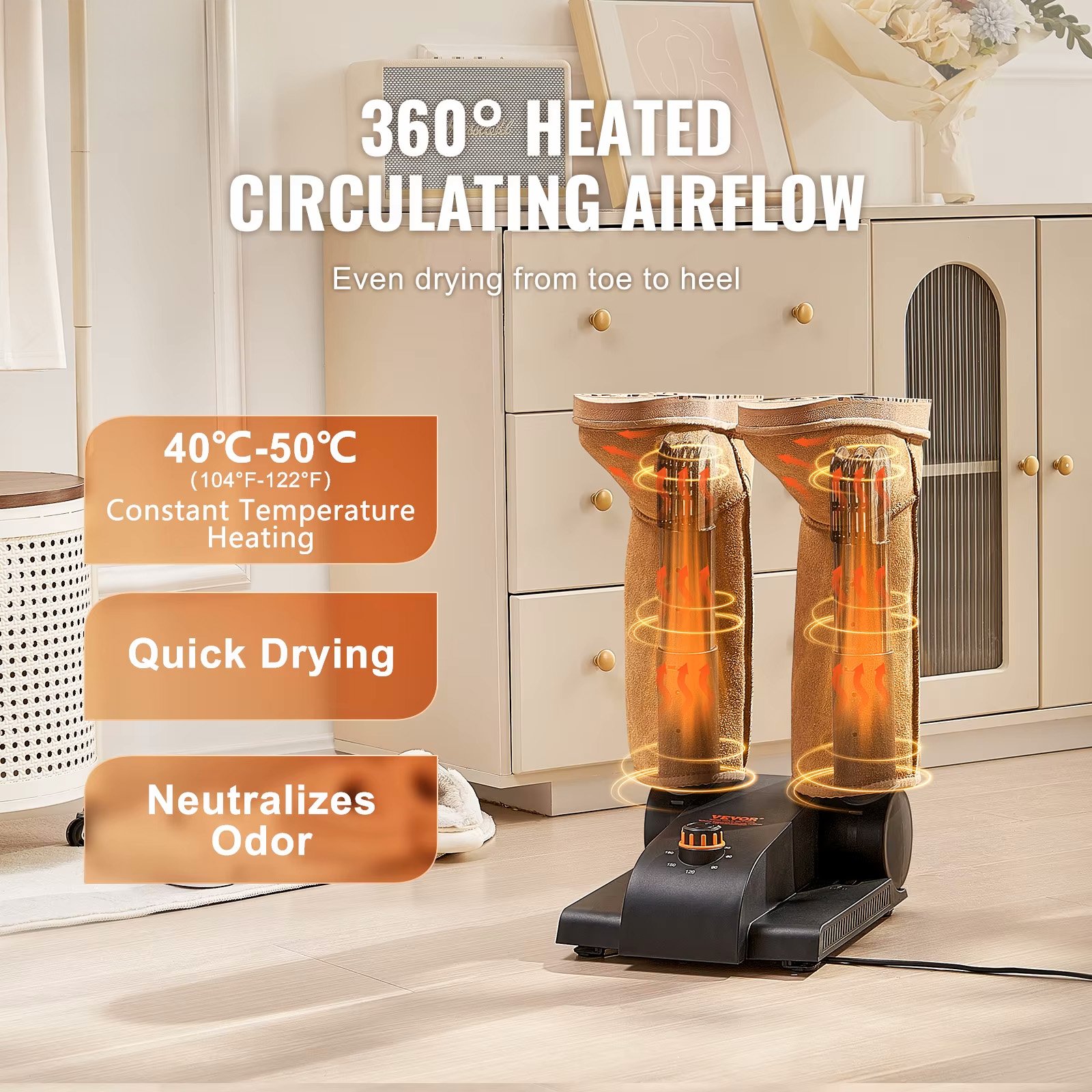 With a 180° foldable design and detachable tubes, this dryer easily adapts to various shoe sizes and types—from leather boots and canvas sneakers to gloves and socks. A stable drying temperature of 104°F to 122°F ensures safe, even heat without risk of damaging your gear. Set it and forget it with the built-in 3-hour timer and automatic shut-off, giving you peace of mind even while you sleep. Built from flame-retardant, heat-resistant materials, it’s made to last and designed for safety.