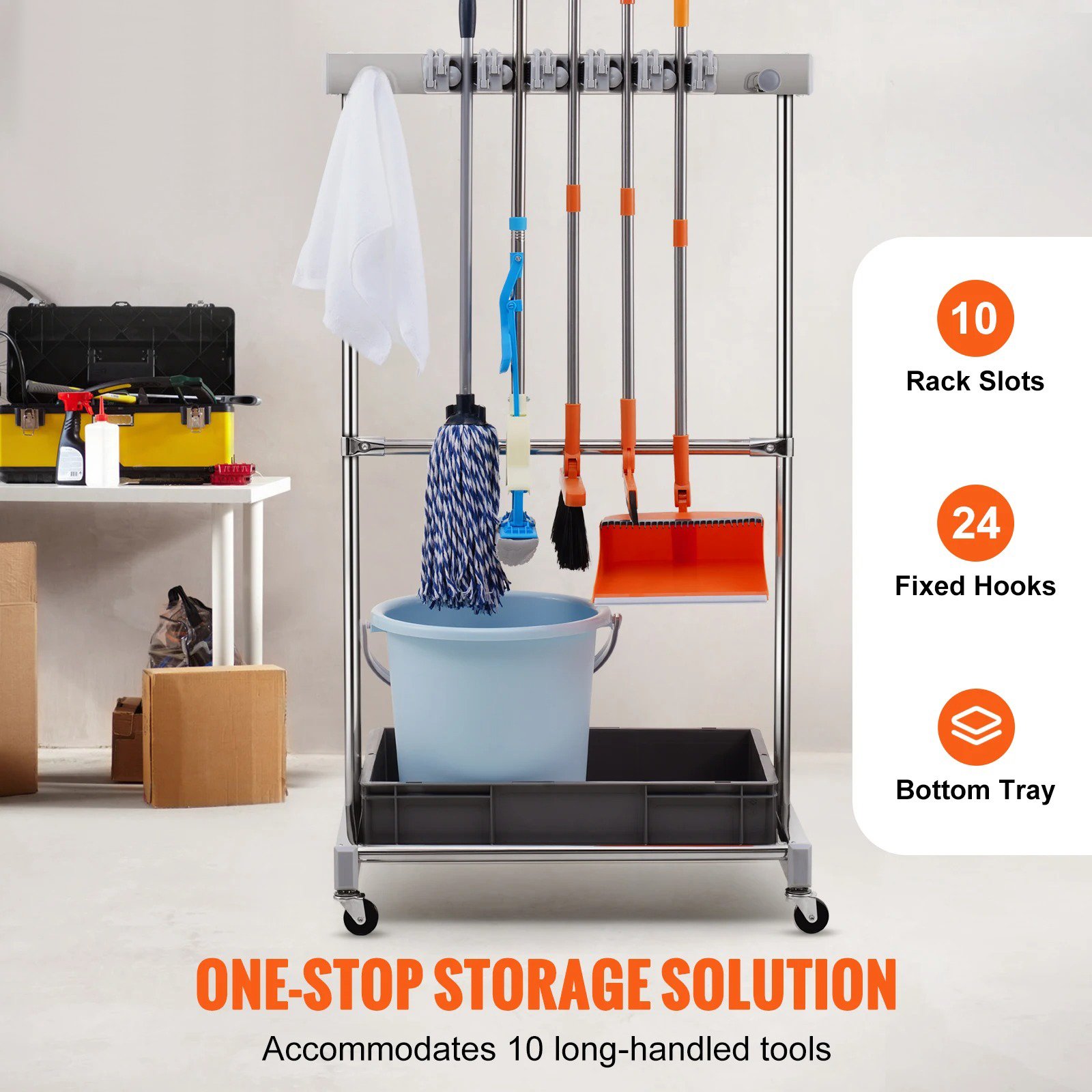 - Clean and Dry Storage: The integrated PP tray keeps wet tools like mops and brooms from dripping, preventing messes and ensuring your floors stay dry.