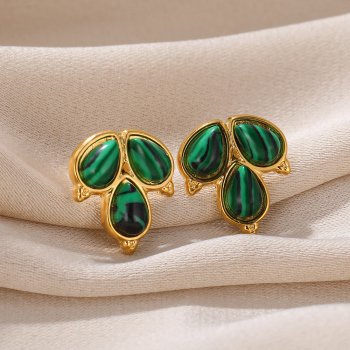 Elegant Green Natural Stone Stainless Steel Hoop Earrings for Women