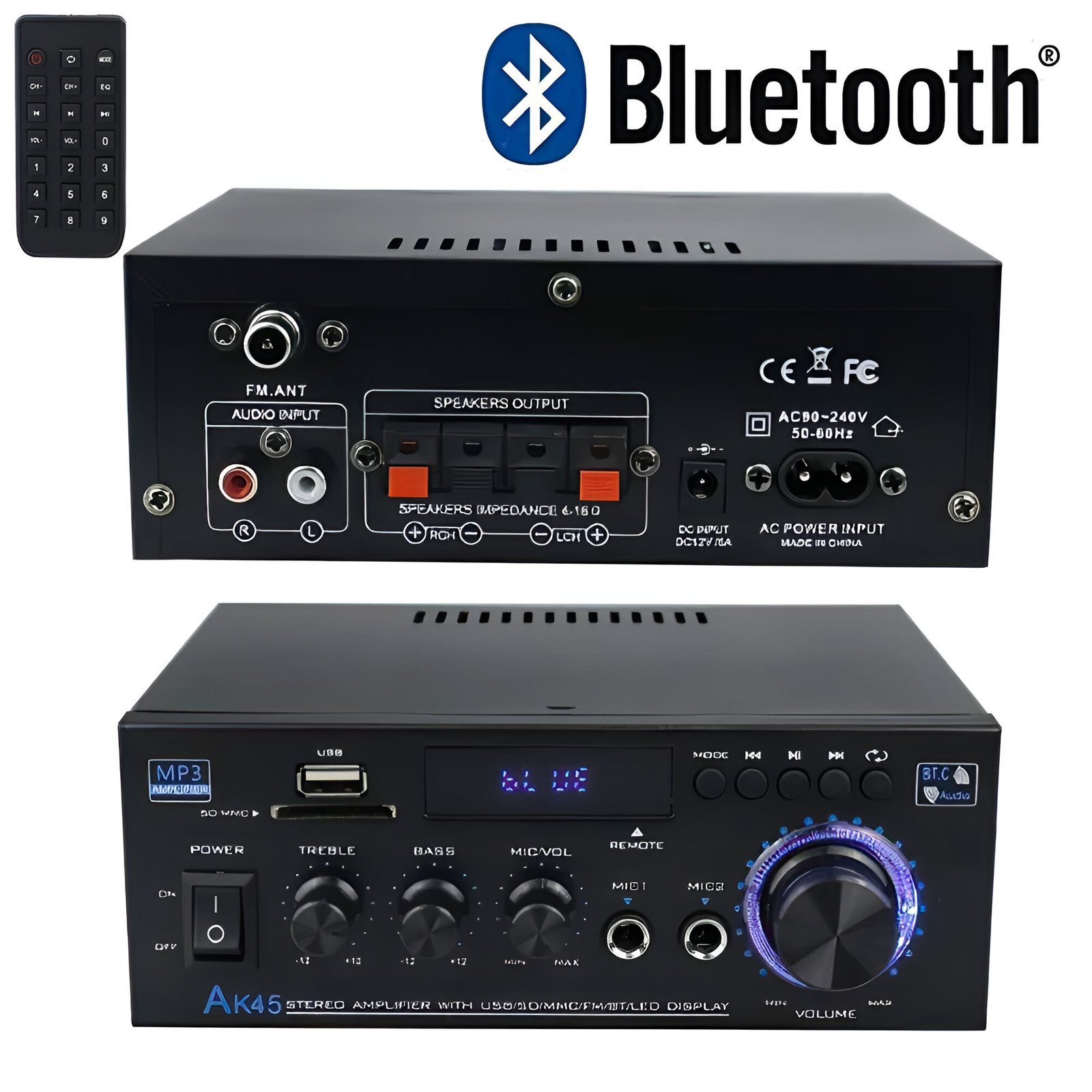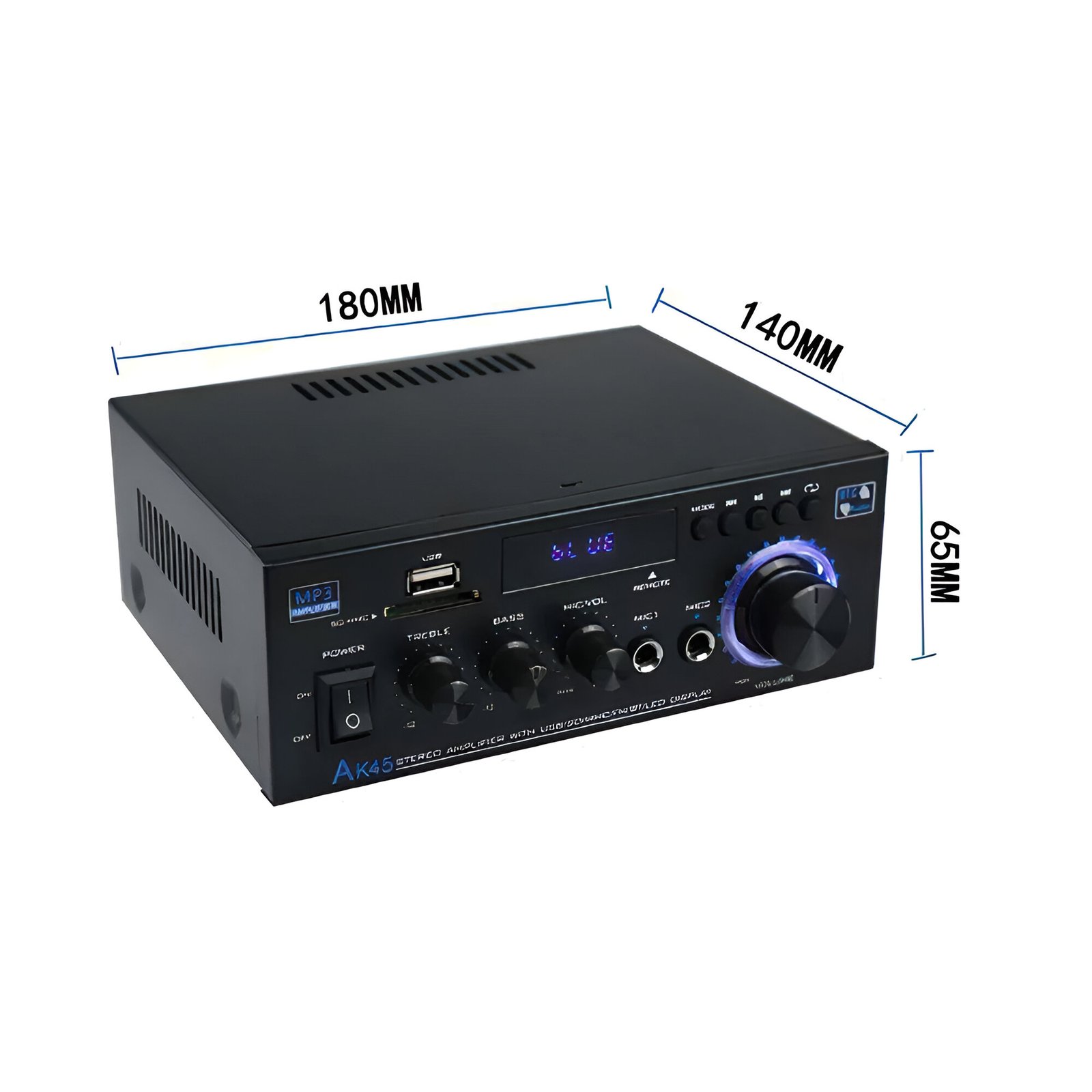 HiFi Bluetooth Stereo Amplifier 2.0 Channel with USB, AUX, FM & Remote