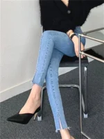 It’s not just the quality or the style; it’s the way these jeans make you feel. The blend of cotton and polyester ensures durability and a soft touch, while the medium stretch fabric allows for freedom of movement without losing shape. These aren’t just jeans; they’re a statement of your personal style, blending Korean fashion influences with the casual, timeless appeal of denim.
