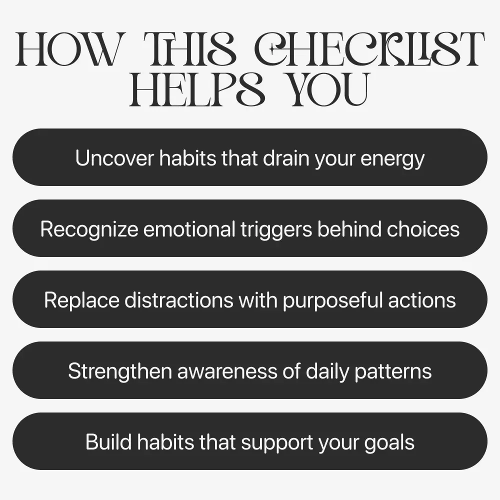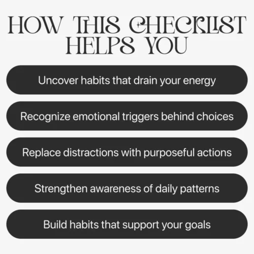 How to Spot Habits That Hold You Back isn’t just a list—it’s a mirror for self-growth. Each section gently guides you to notice what’s been running on autopilot and gives you practical tools to shift it. With its balance of reflection and action, this checklist helps you understand your habits without overwhelm, making self-awareness a daily practice you’ll look forward to.