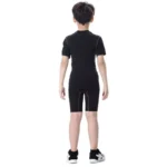 Made from a high-quality blend of Spandex and polyester, these sports shorts offer both flexibility and breathability. The quick-dry feature ensures that your child stays comfortable and dry, even during the most intense activities. The compression fit design not only supports their muscles but also enhances performance by reducing muscle fatigue. Available in a sleek black color, these shorts are as stylish as they are functional.
