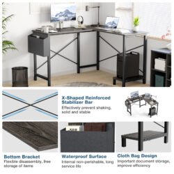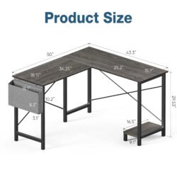 Maximize your workspace with this sleek and modern L-shaped gaming and office desk. Designed to fit seamlessly into any home office, bedroom, or small space, this 50-inch corner desk provides ample room for dual monitors, laptops, and accessories while maintaining a clean and organized look. Whether you need a dedicated workstation for productivity or an immersive gaming setup, this multifunctional desk is built to support your needs.