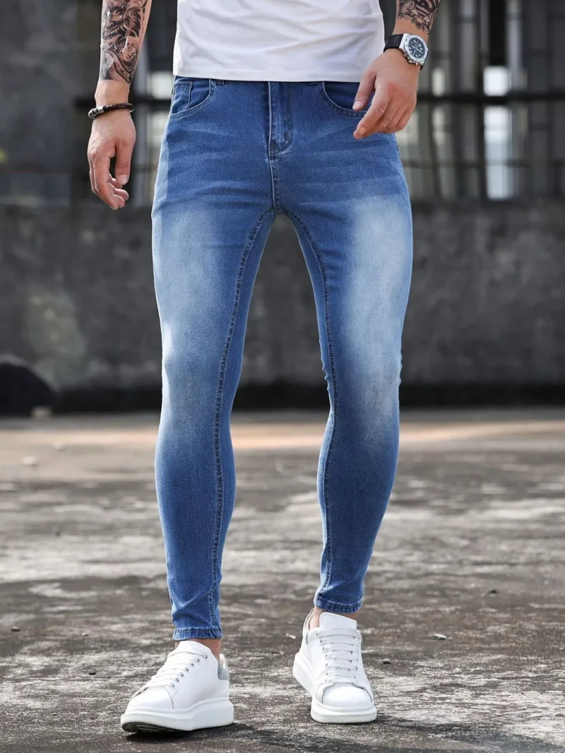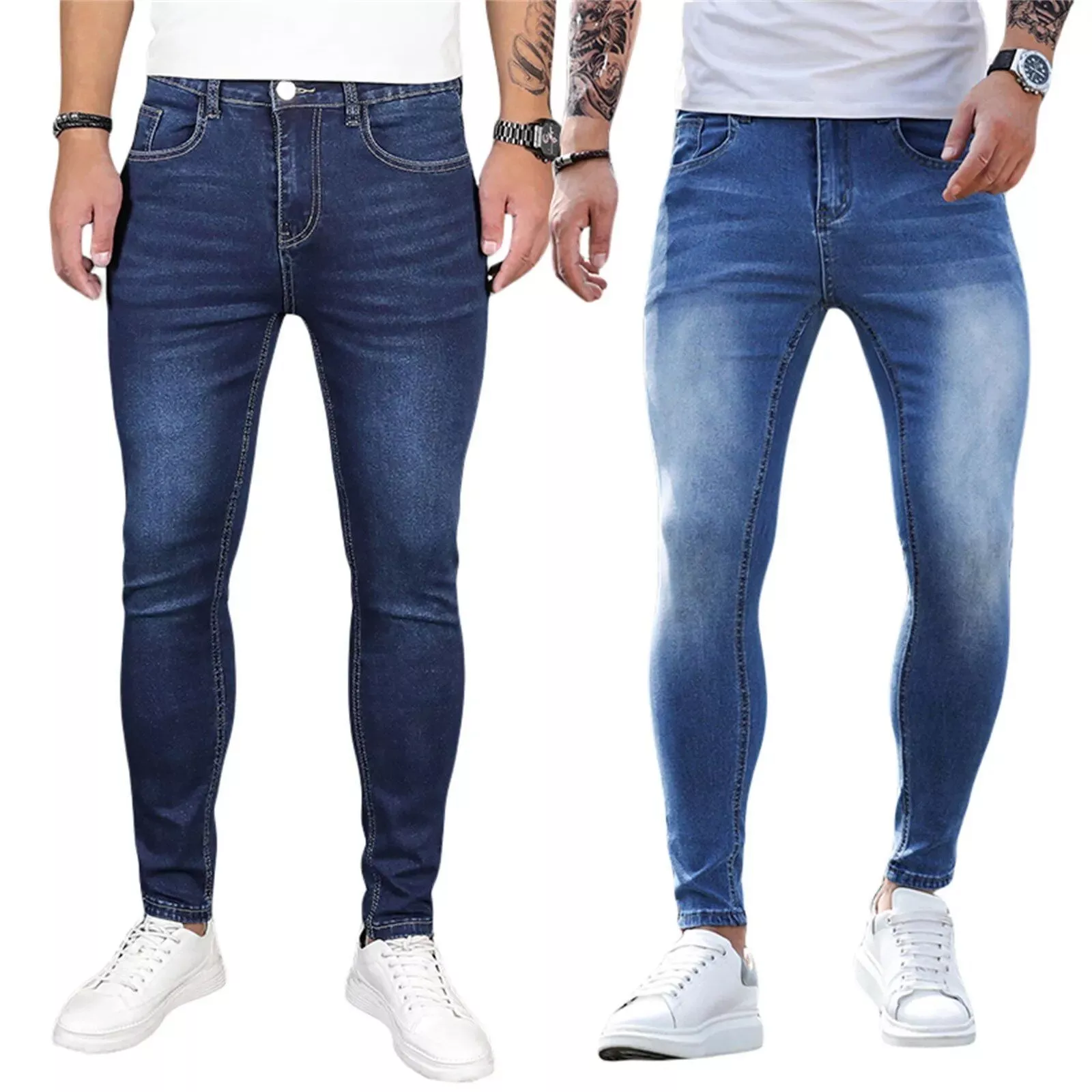 Men's Slim-Fit Stretch Denim Jeans - Casual Skinny Trousers with Pockets