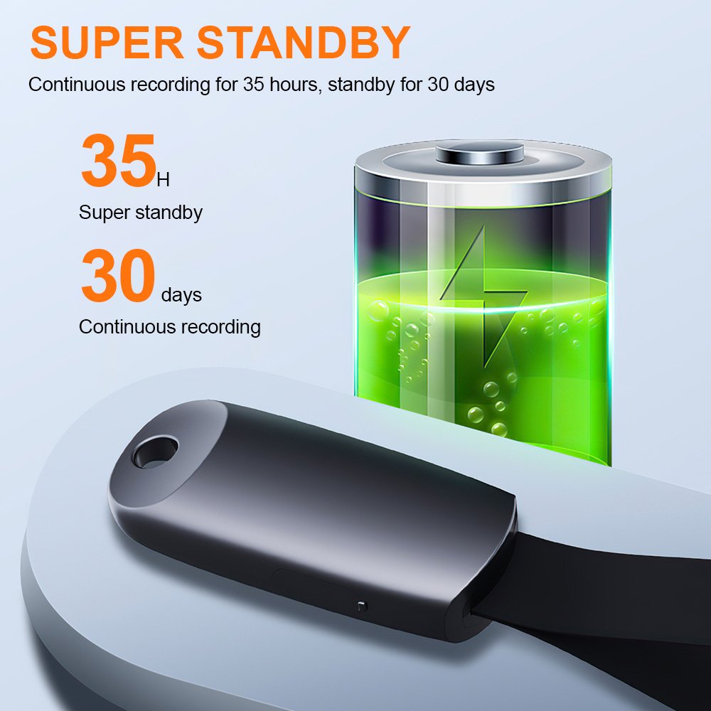 With up to 35 hours of continuous recording and a remarkable 30-day standby time, this recorder is built for endurance. Its advanced DSP noise reduction technology ensures every word is crystal clear—even in noisy environments. The intelligent voice activation feature automatically records when sound is detected and pauses when it’s silent, making it efficient and memory-saving.