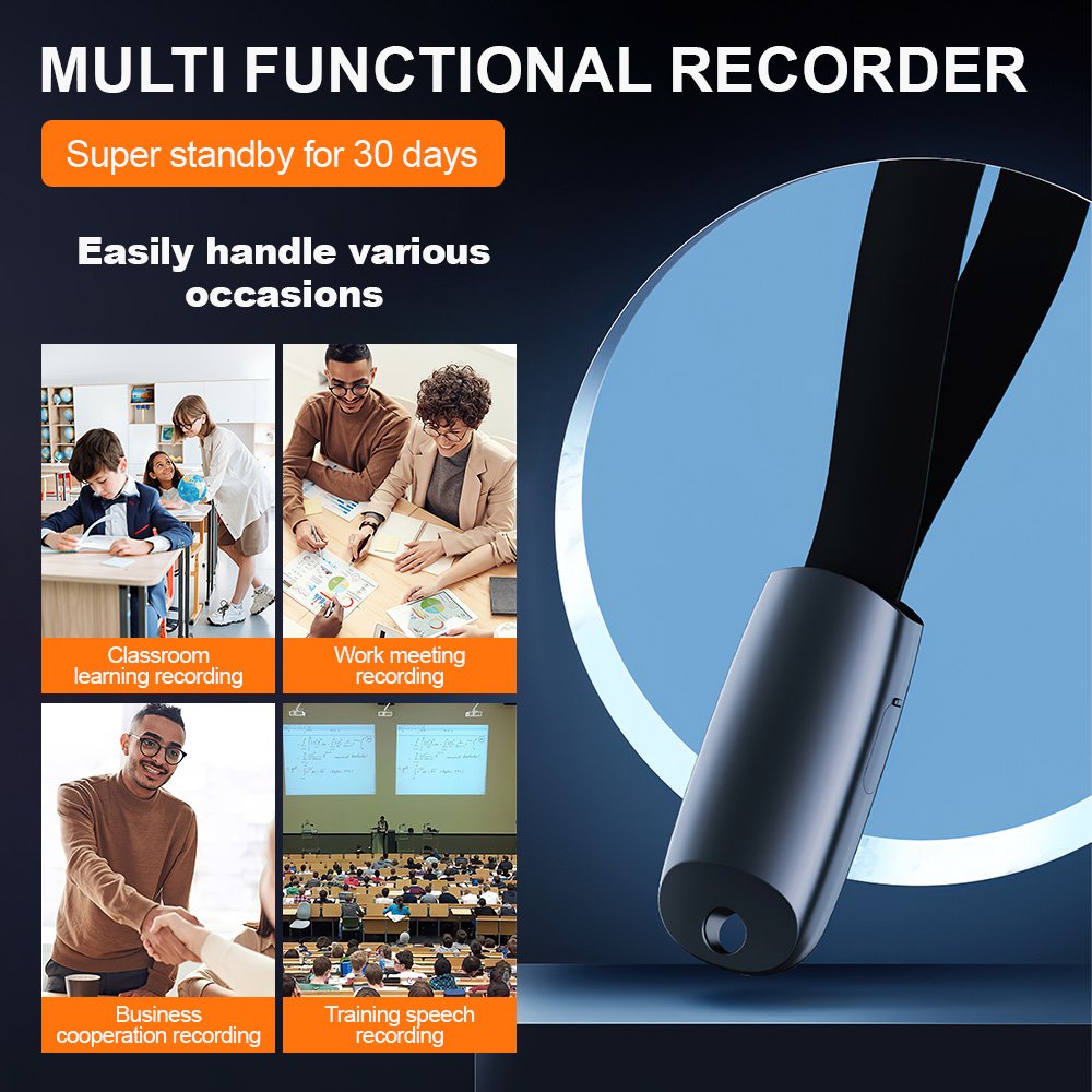 This recorder is ideal for a wide range of scenarios: during classroom lectures, business meetings, training sessions, interviews, or even personal voice memos. The simple interface makes it suitable for students, journalists, professionals, and anyone who needs a reliable way to record audio on the fly. Its discreet design allows you to hang it from a wallet, keys, phone, or backpack—record effortlessly, anytime and anywhere.