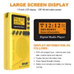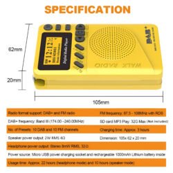 This sleek device does more than just play radio. It features a built-in speaker, SD card slot for MP3 playback, and a 1.44″ LCD screen to clearly display station info, song data, and time. With a rechargeable battery that lasts up to 22 hours in headphone mode, it’s a dependable companion for long outings, travel, and even around the house. Quick and smart auto scanning takes the hassle out of tuning — just turn it on and let it do the work.
