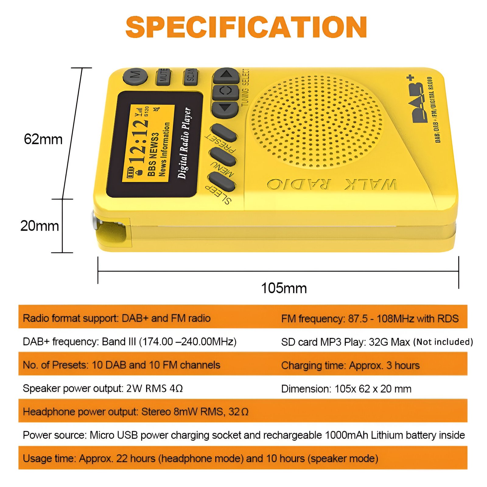 Take your music and favorite radio stations on every journey with this **Mini Pocket DAB/DAB+ FM Radio**. Whether you’re hiking, commuting, jogging, or relaxing in the park, this compact and portable radio offers crystal-clear digital sound with both DAB/DAB+ and FM reception. Lightweight and ultra-slim, it slips easily into your pocket, backpack, or purse — always ready to entertain you wherever life takes you.