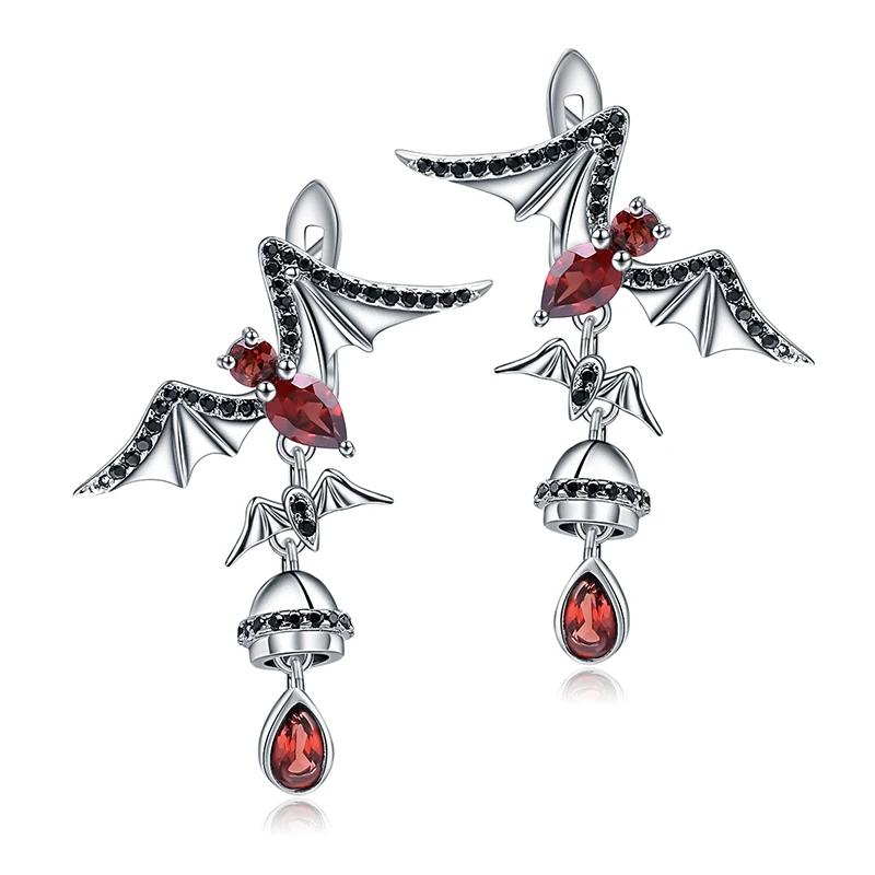 Unique Gothic Style Natural Garnet Bat Drop Earrings