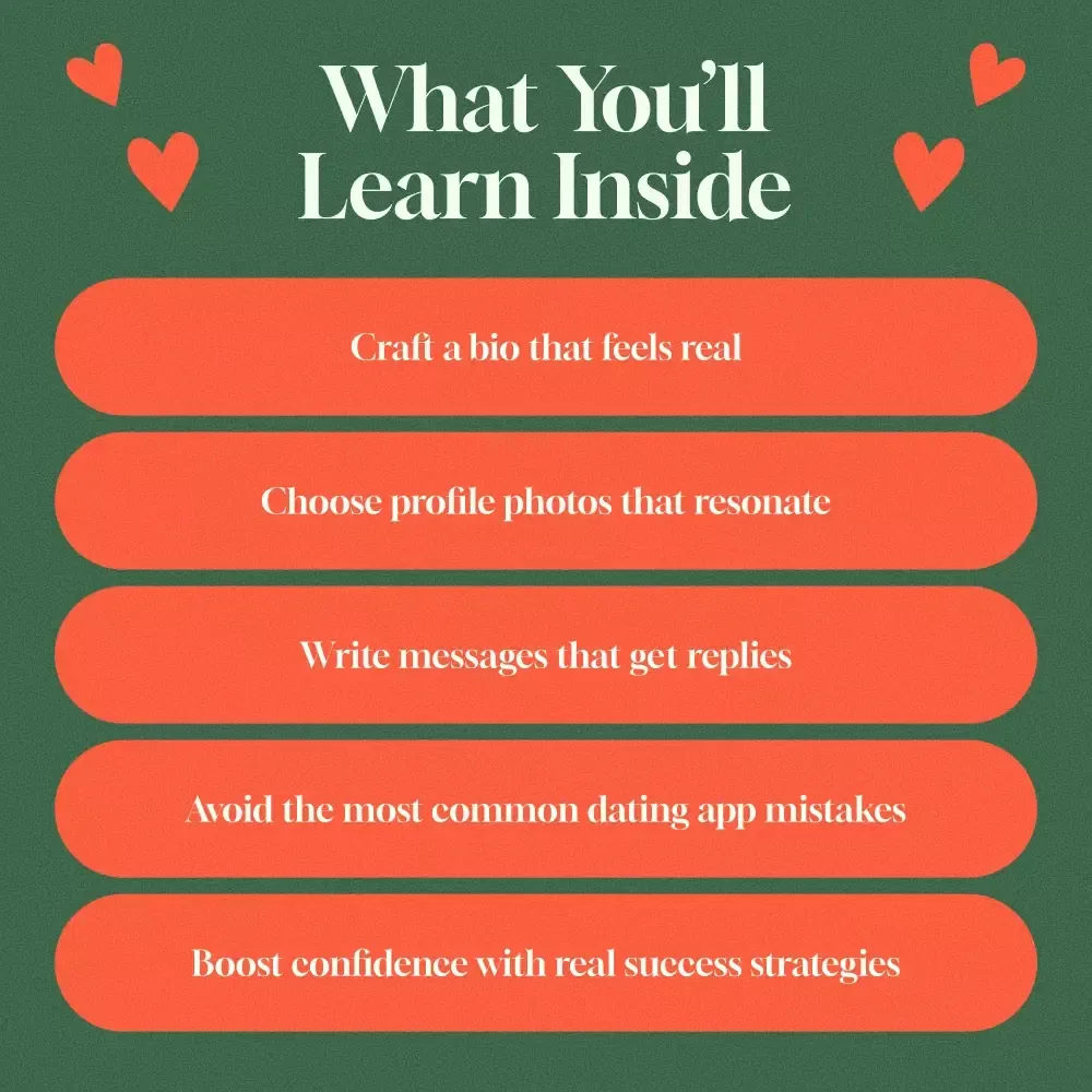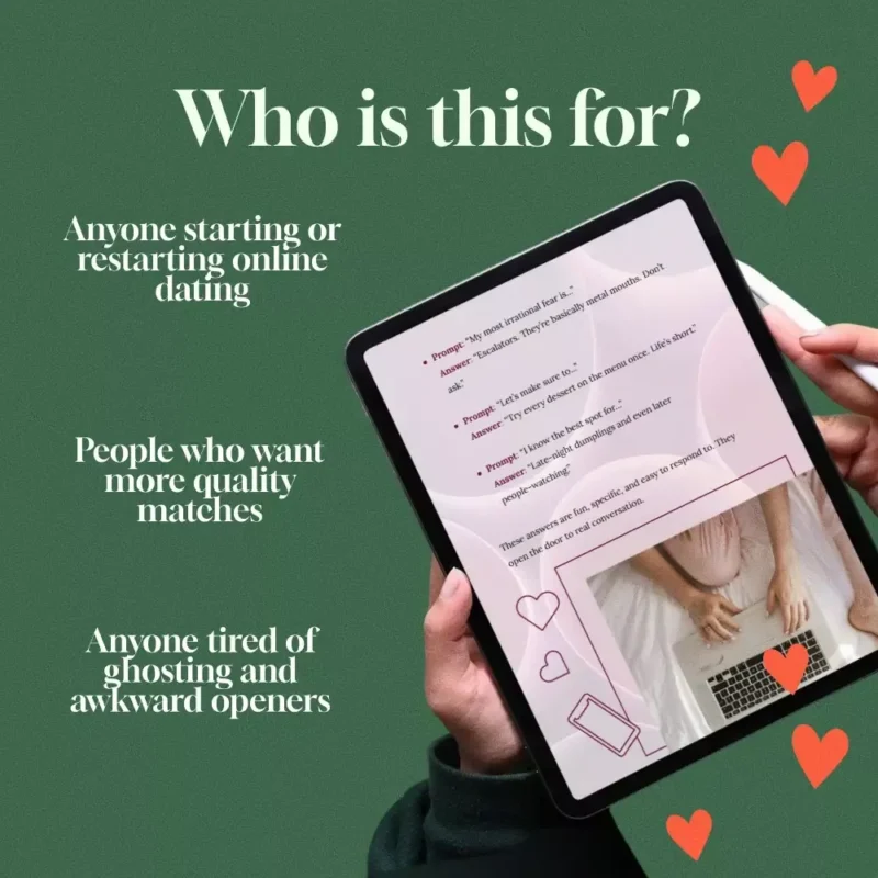 The Online-Dating Profile Blueprint is for anyone looking to date more intentionally and authentically—whether you’re getting back out there or starting from scratch on dating apps.