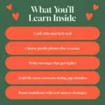 This isn’t just another “what to say on Tinder” list. The Online-Dating Profile Blueprint is designed to help you be seen, understood, and remembered—for all the right reasons. It’s honest, supportive, and focused on helping you find connections that feel good and go deeper.