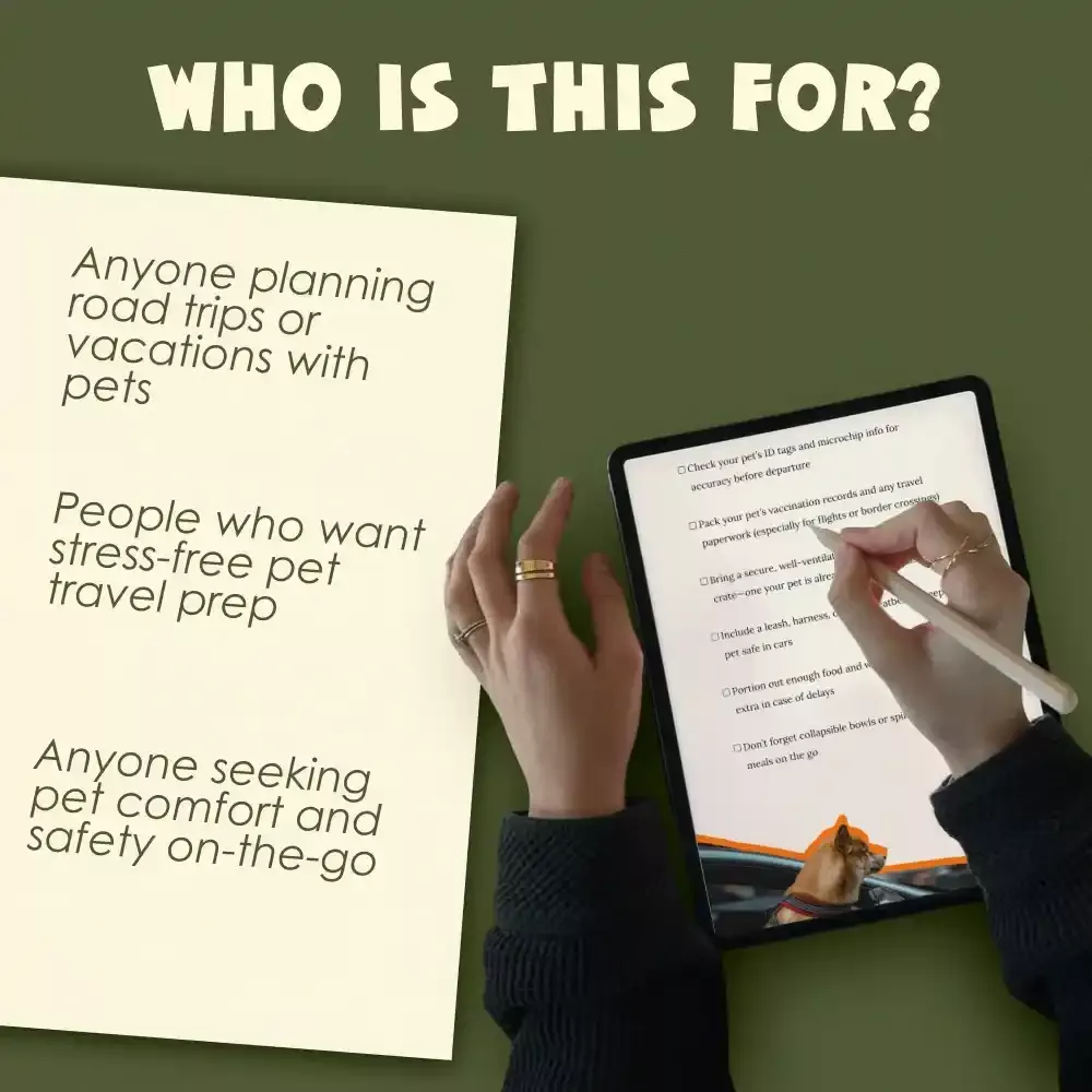 The Pet Travel Essentials Checklist for Safe Trips is designed for pet parents planning vacations, first-time pet travelers, and anyone who wants smooth, safe trips with their dog or cat.