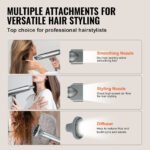 - Versatile Attachments: Includes smooth nozzle, styling nozzle, and diffuser, perfect for achieving a variety of looks, from sleek and straight to voluminous curls.